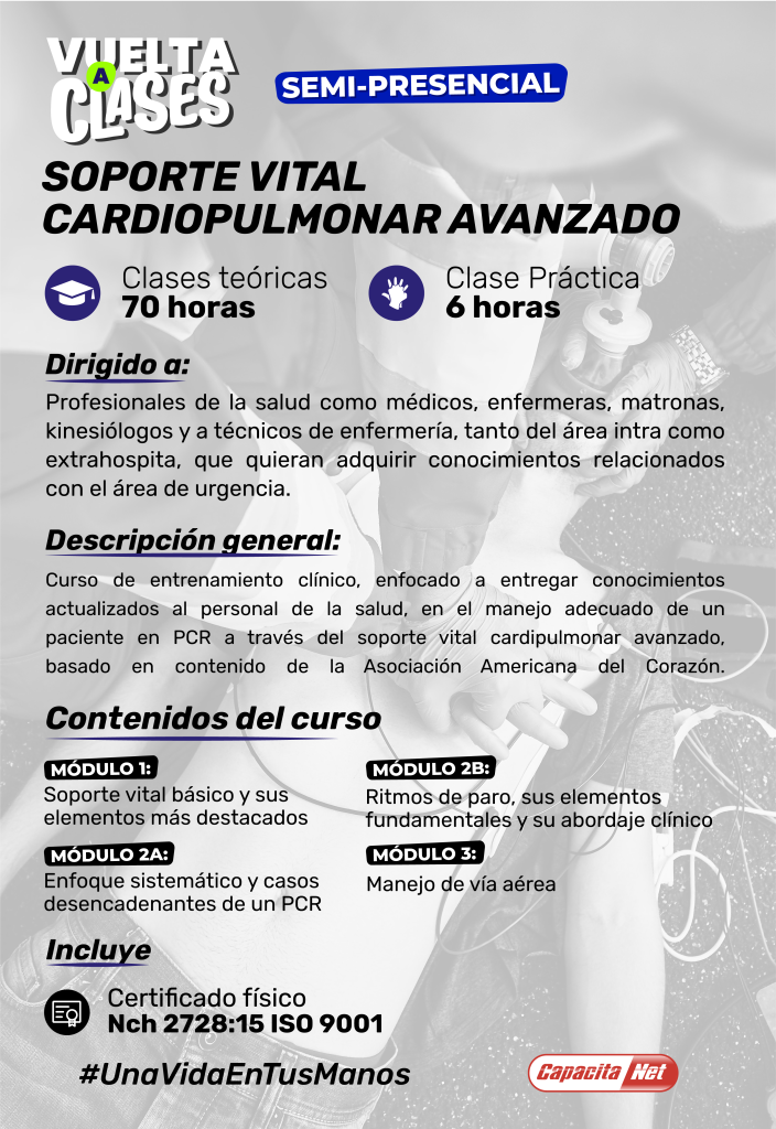 Curso de ACLS semipresencial + Curso a elección, 100% online, en Santiago