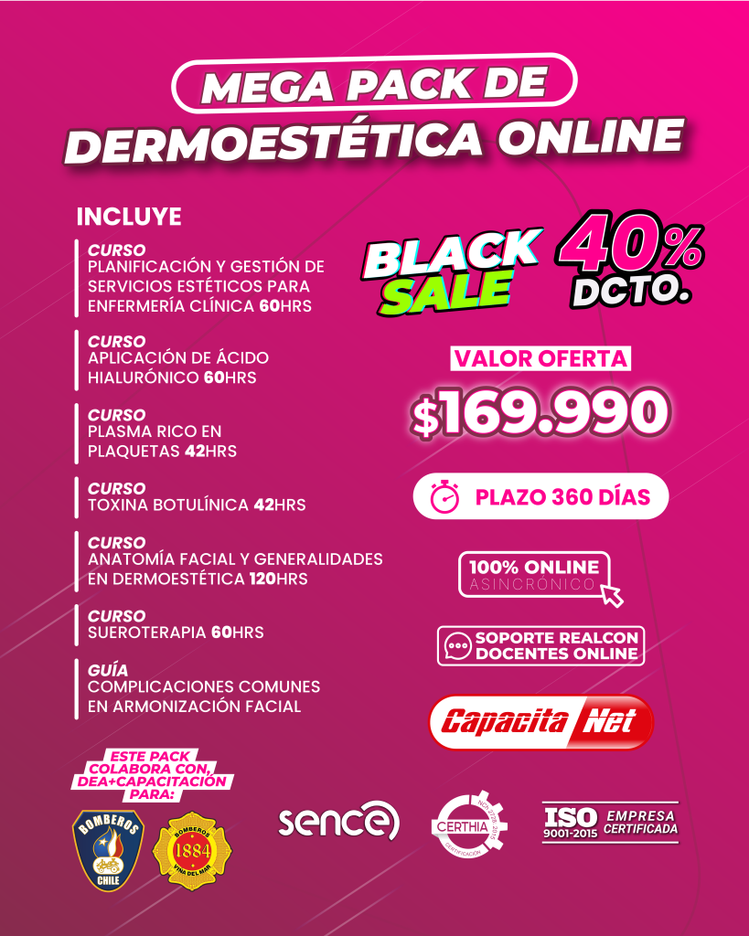 Disfruta de un modelo educativo flexible, pensado para adaptarse a tu estilo de vida. Impulsa tu crecimiento profesional con contenidos actualizados, videoclases demostrativas, material descargable y acompañamiento docente vía WhatsApp. Además, nuestra OTEC está certificada por SENCE bajo la norma NCH 2728:2015, lo que garantiza calidad y validez para tu desarrollo laboral. MEGA PACK DE DERMOESTÉTICA ONLINE por $169.990 que te abrirán nuevas oportunidades en el mundo de la estética.